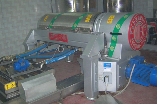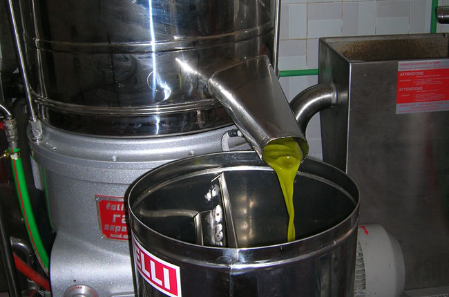 Dopo un'adeguata gramolazione, la pasta passa in una centrifuga orizzontale (Decanter) di ultima generazione. Questo processo consente l’estrazione dell’olio separandolo dalla pasta e dall’acqua di vegetazione presente nelle olive. L’olio che fuoriesce dal decanter va nel separatore (centrifuga verticale), quest’ultimo passaggio garantisce l’eliminazione di qualsiasi impurità dall’olio. Questa fase avviene a freddo e senza aggiunta di acqua.